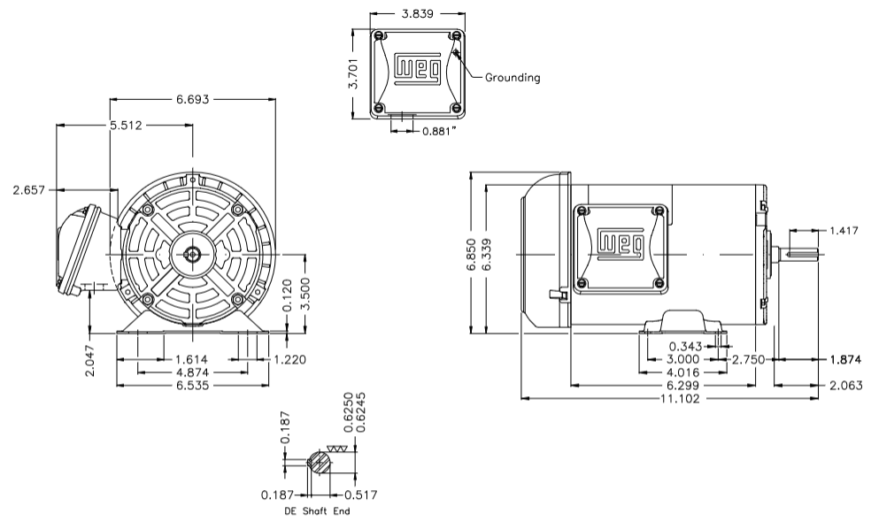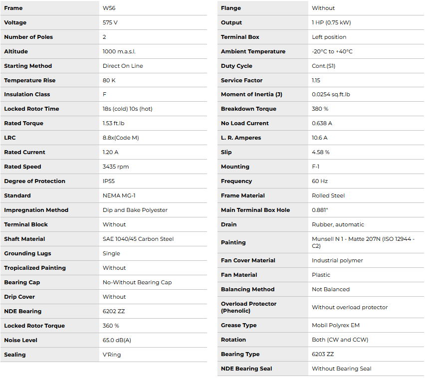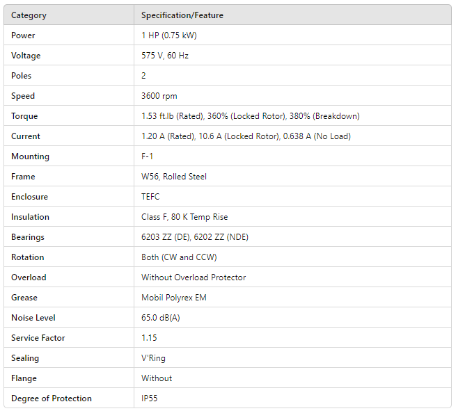 TF000502W01DOE, Rolled Steel Premium Efficiency 1Hp 3435 Rpm 2P W56 3Ph 575 V 60 Hz IC411 - TEFC - Foot-mounted