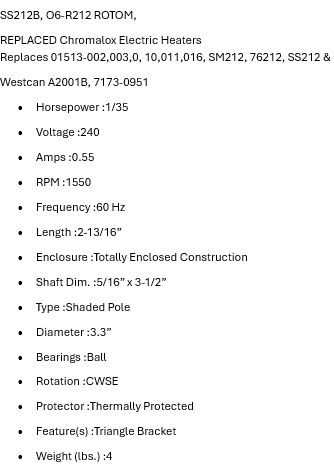 SS212B, 1/35 HP, 240V, 1550 RPM, O6-R212, 7173-0951, OMNIDRIVE