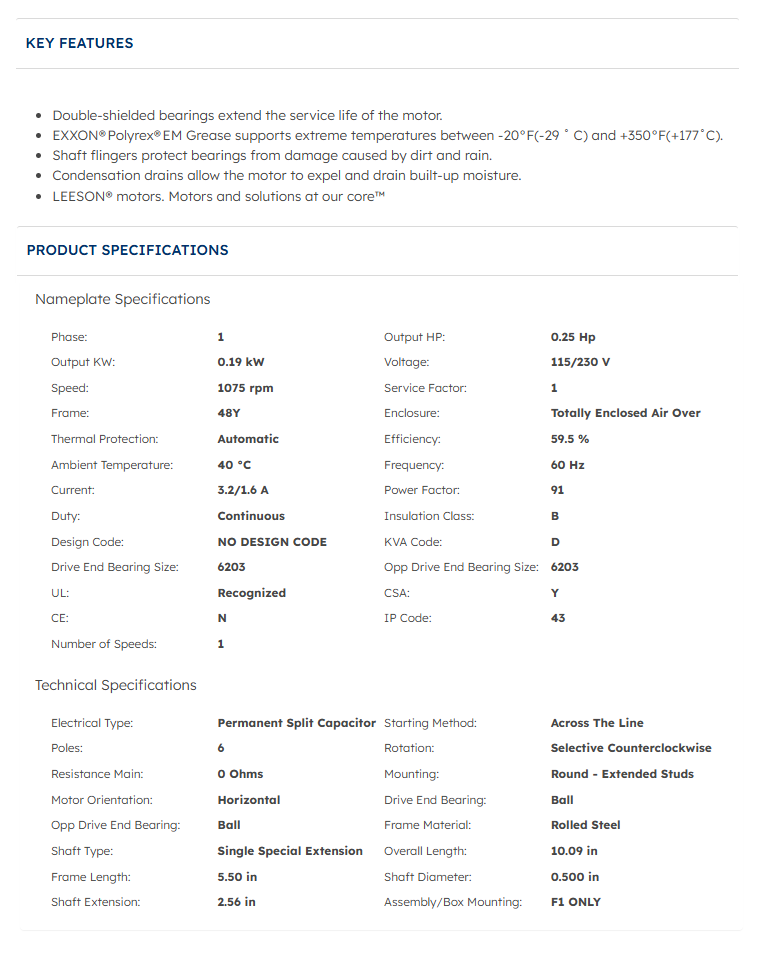 • Electrical Type: Permanent Split Capacitor (PSC)