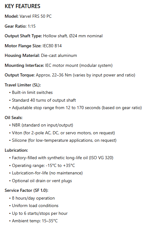 • Output Shaft Type: Hollow shaft, Ø24 mm nominal