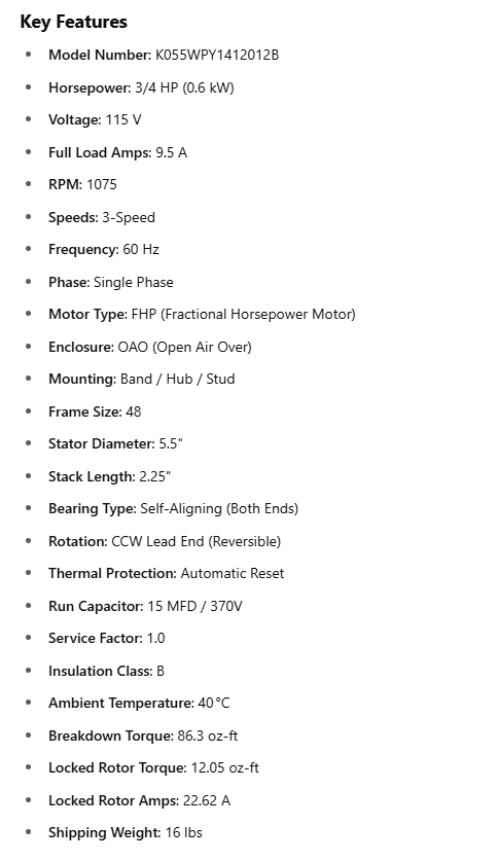 8904,Us Motors,EM3589,EconoMaster,SS3589,3/4Hp,1075/3SPD,115V,Fr:48,DD-3589,