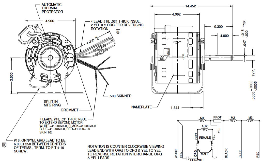 • Connection & Capacitor Information Furnished in Nameplate Data