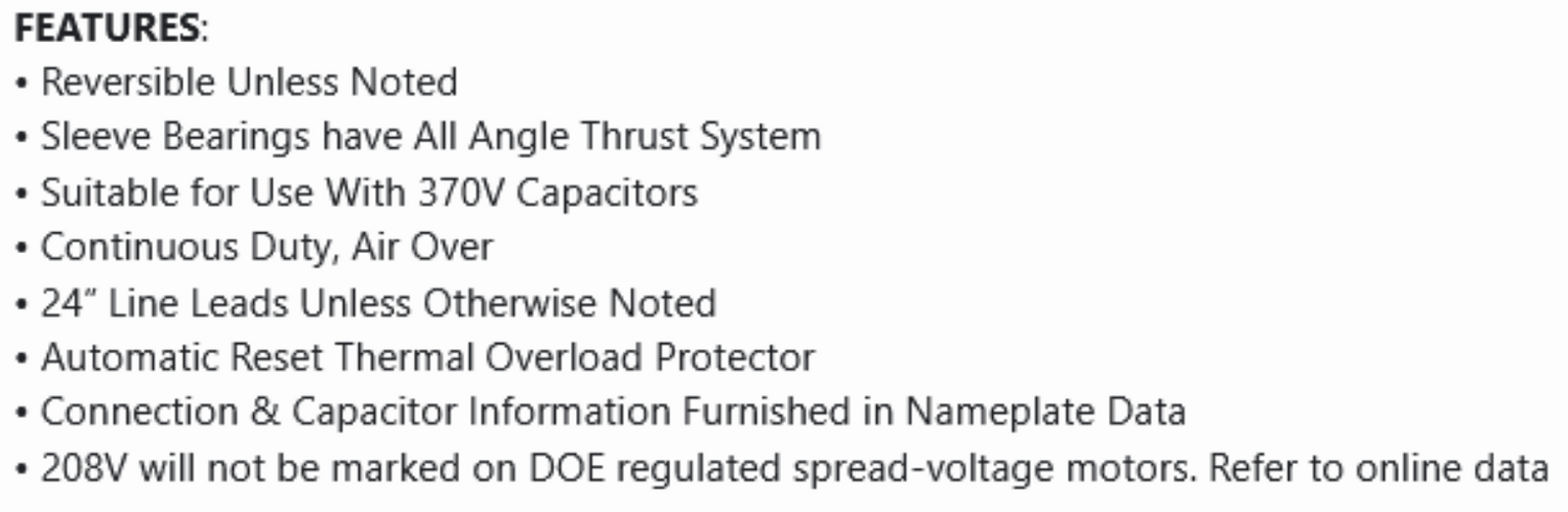 • 208V will not be marked on DOE regulated spread-voltage motors. Refer to online data
