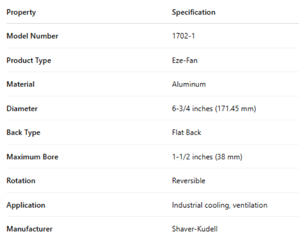 1702-1, Aluminum Eze-Fan – 6 3/4", 171.45 mm – Flat Back est en rupture de stock et sera expédié dès qu’il sera de retour en stock.