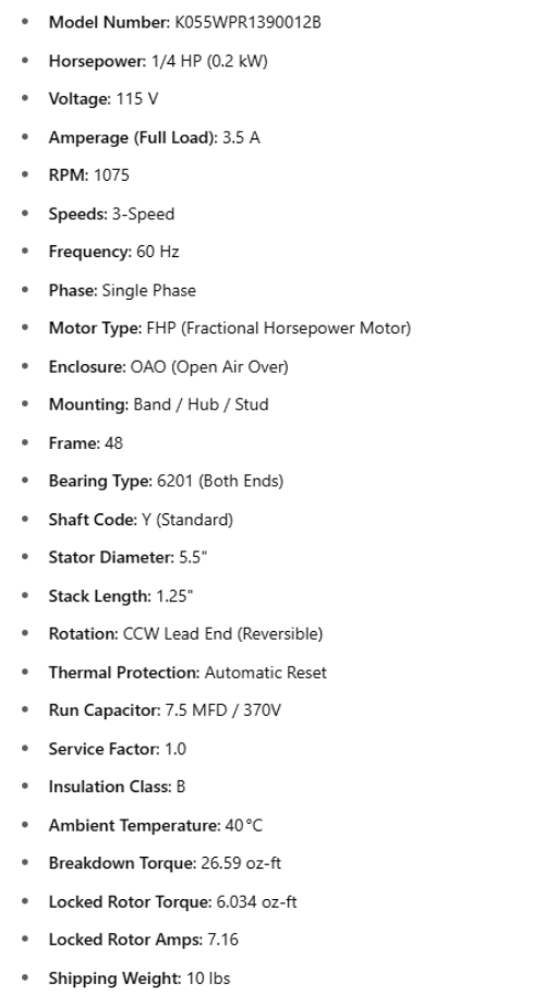 1863, Us Motors, Nidec, K055WPR1390012B, Replace Marathon X000, 048A11O1798, EM3583, Century
