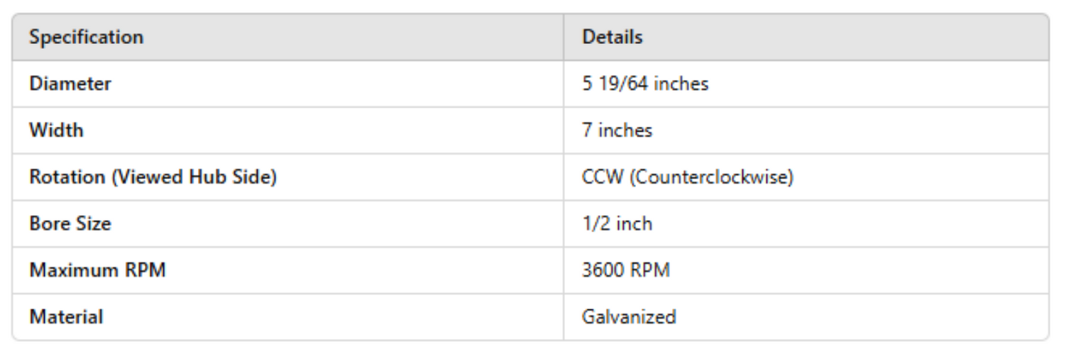 2-6012, Fasco, Double Inlet Blower Wheel, 7 W, CCW, 3600 RPM