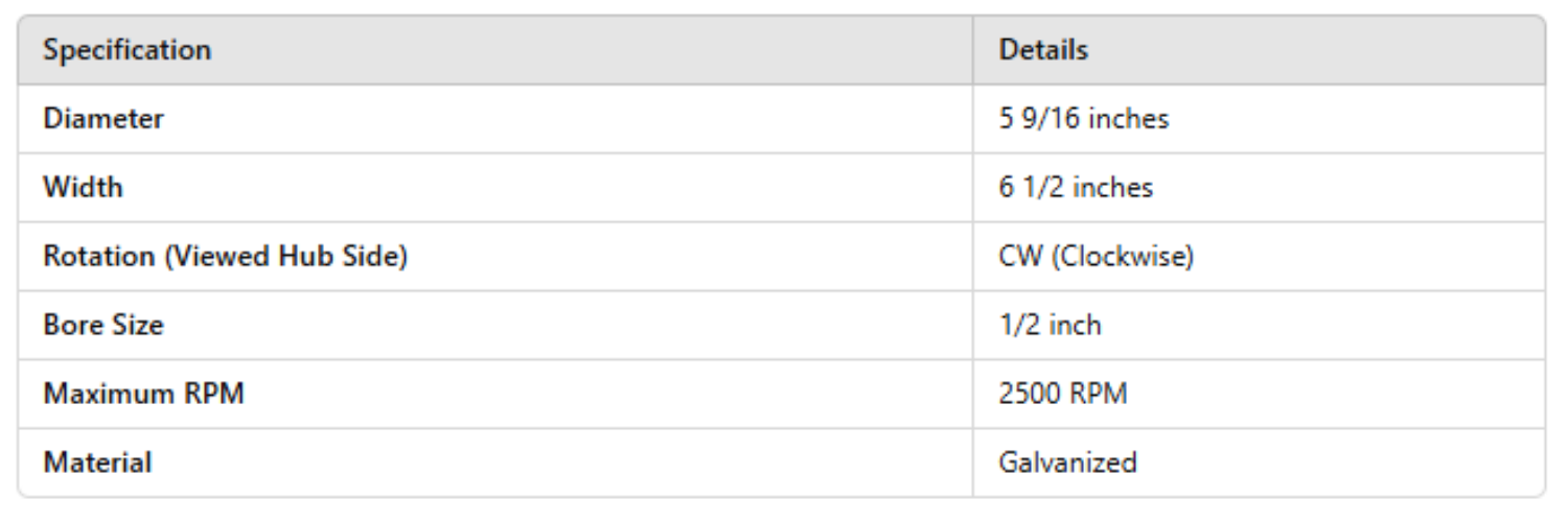 2-6013, Double Inlet Blower Wheel, 6 1/2" W, CW, 2500 RPM, 87106013.WHEEL.5 9/16 DIAMETER