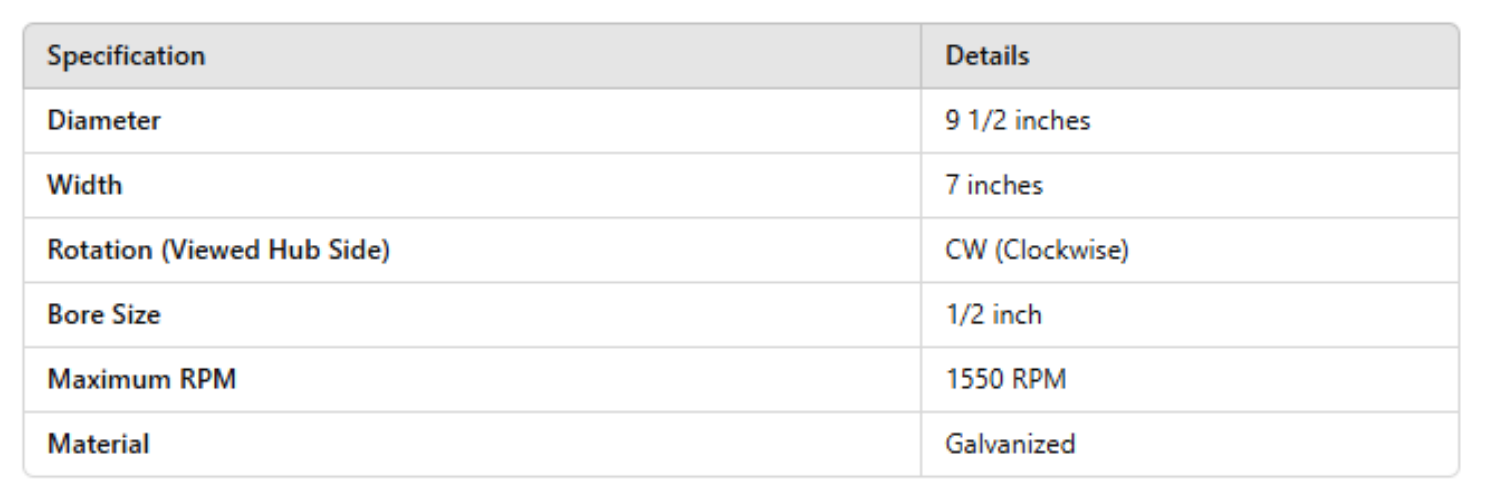 2-6019, Fasco, Double Inlet Blower Wheel, 7 W CW, 1550 RPM