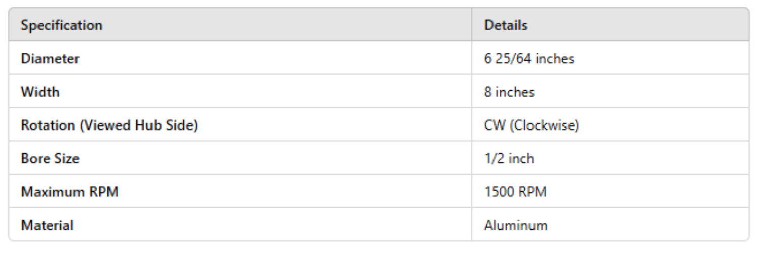 2-6034, Double Inlet Blower Wheel, 8" W, CW, 1500 Rpm, 87106034.Wheel.6 25/64 Diameter est en rupture de stock et sera expédié dès qu’il sera de retour en stock.
