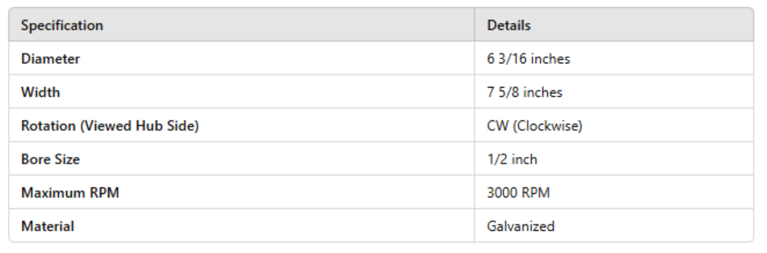 2-6084, Double Inlet Blower Wheel, 7 5/8 W, CW, 3000 RPM