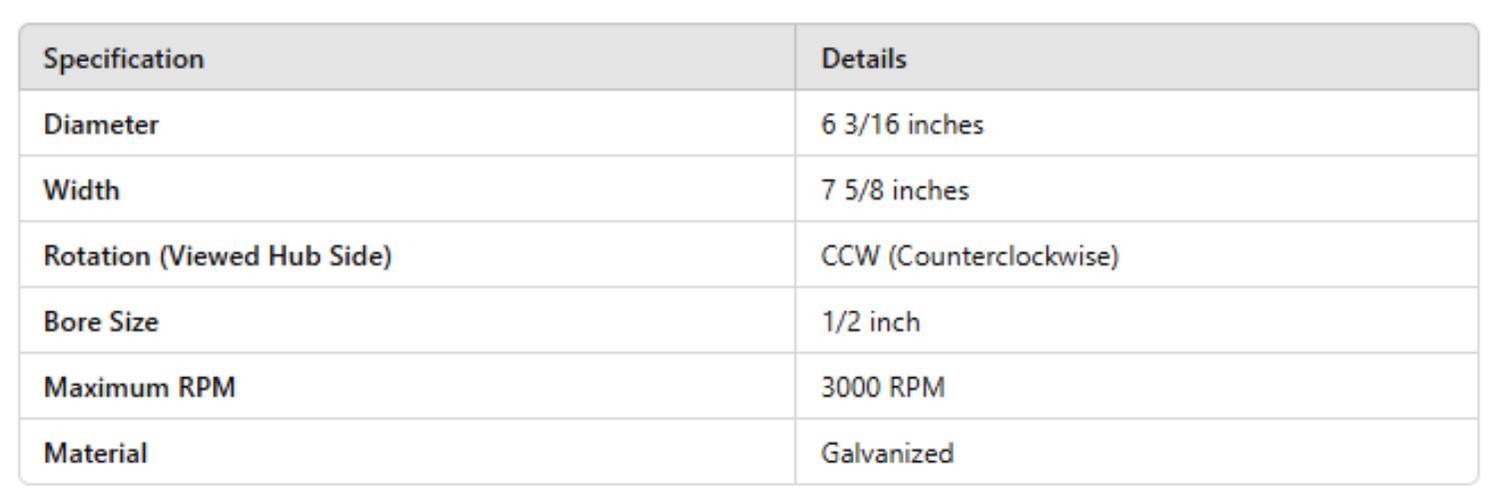 2-6085, Double Inlet Blower Wheel, 7 5/8 W, CCW, 3000 RPM