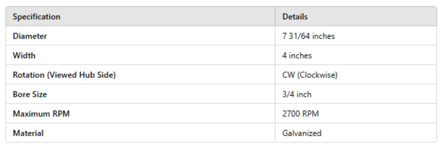 2-6086, Double Inlet Blower Wheel, 4 W, CW, 2700 RPM