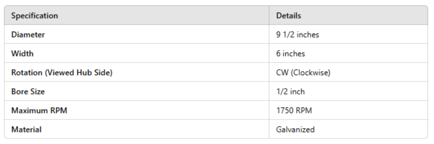 2-6089, Double Inlet Blower Wheel, 6 W, CW, 1750 RPM