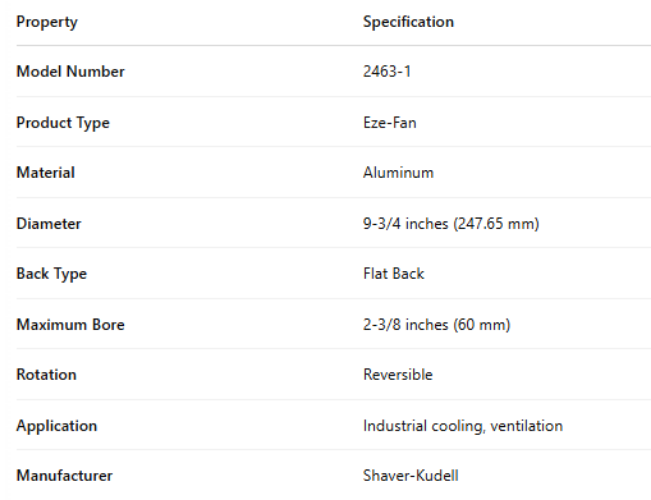 2463-1, Aluminum Eze-Fan – 9 3/4", 247.65 mm – Flat Back est en rupture de stock et sera expédié dès qu’il sera de retour en stock.
