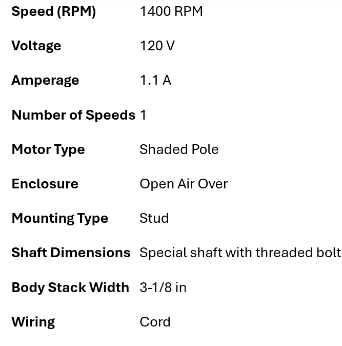 2868-407-086, Electrohome, 1400 Rpm, 120 Volts, Open air over,
