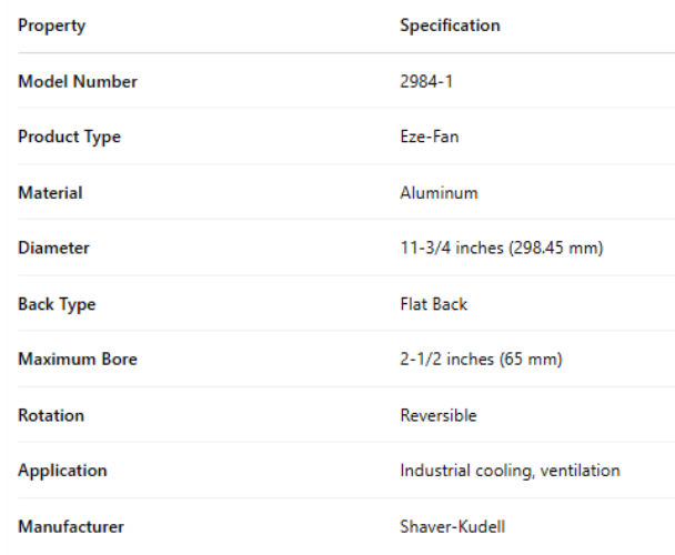 2984-1, Aluminum Eze-Fan – 11 3/4", 298.45 mm – Flat Back est en rupture de stock et sera expédié dès qu’il sera de retour en stock.