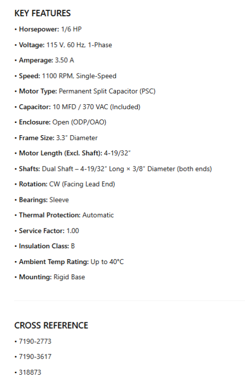 • Shafts: Dual Shaft – 4-19/32″ Long × 3/8″ Diameter (both ends)