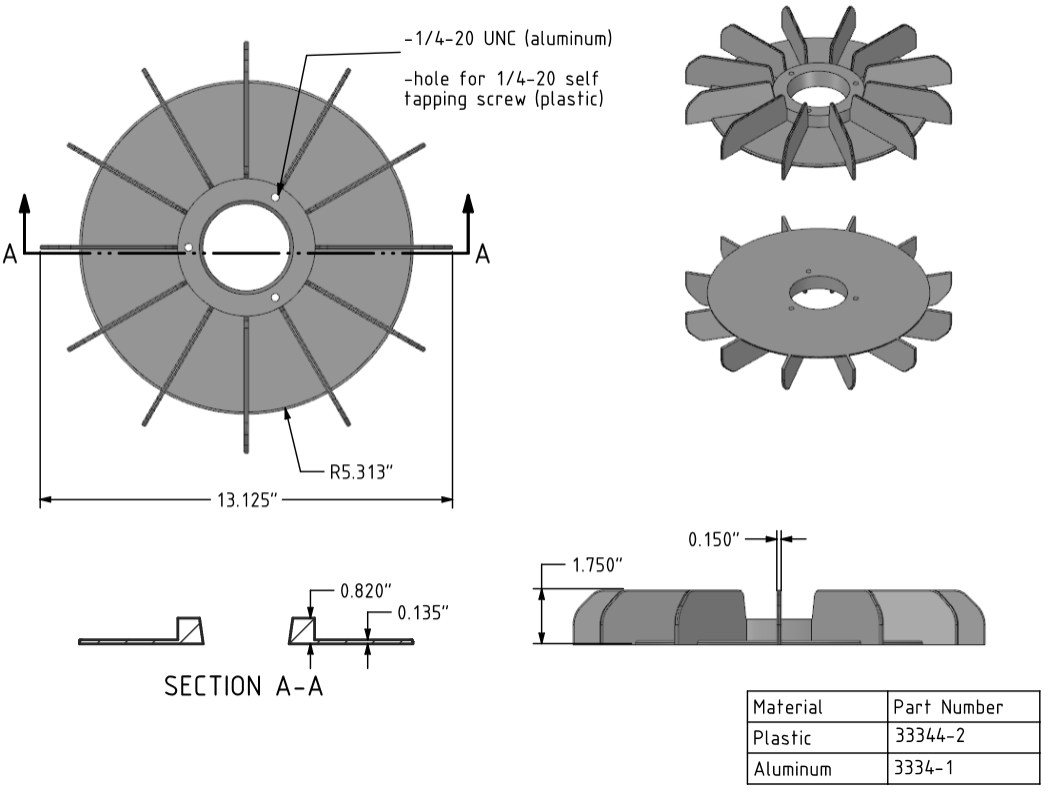3334-1, Aluminum Eze-Fan – 13 1/8", 333.38 mm – Flat Back