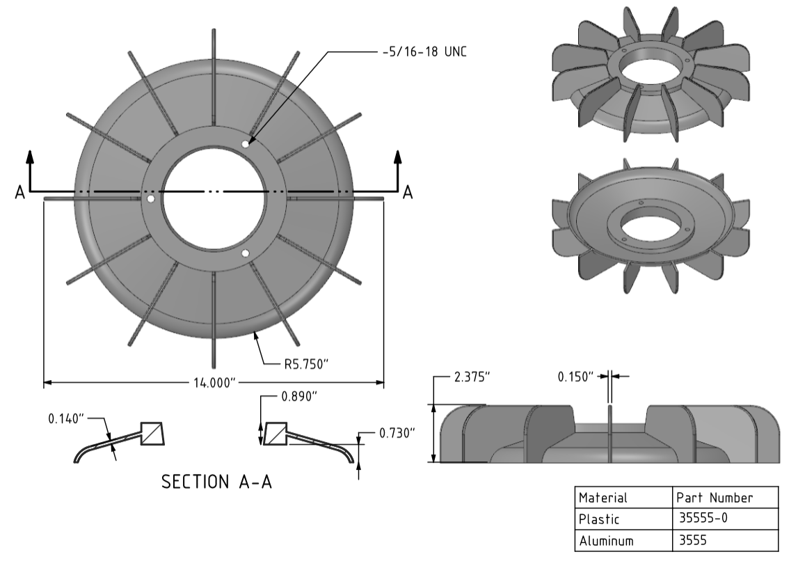 3555, Aluminum Eze-Fan – 14", 355.6 mm – Curved Back
