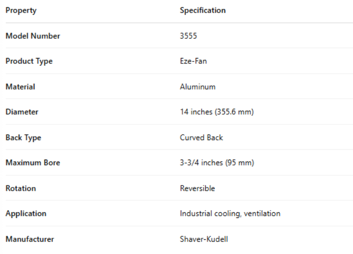 3555, Aluminum Eze-Fan – 14", 355.6 mm – Curved Back est en rupture de stock et sera expédié dès qu’il sera de retour en stock.