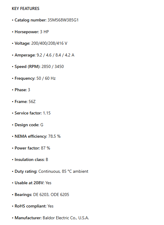 • Manufacturer: Baldor Electric Co., U.S.A.