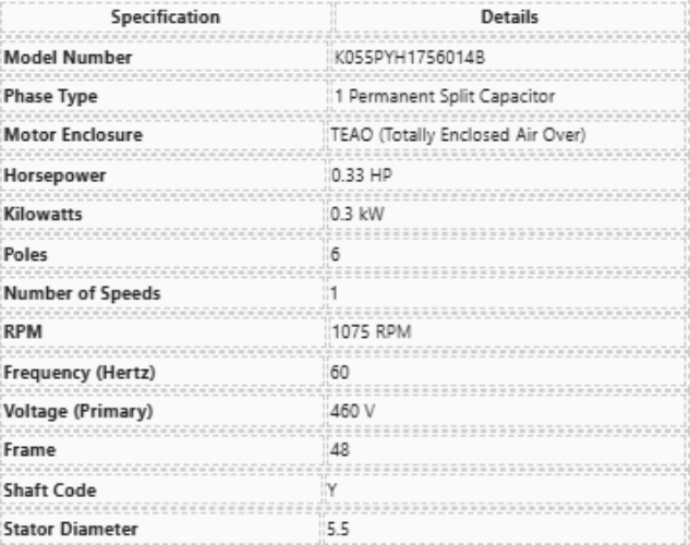 3737H, K055PYH1756014B, Us Motors, 1/3Hp, 1075 Rpm, 460 Volts, Fr:48,