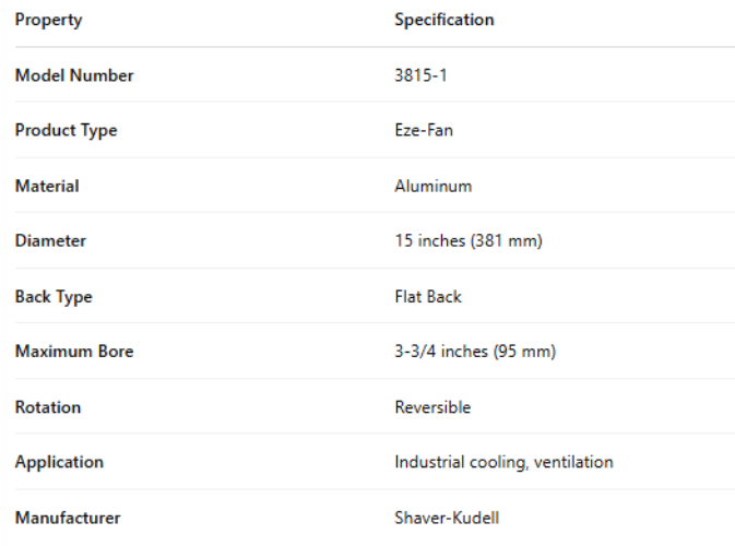 3815-1, Aluminum Eze-Fan – 15", 381 mm – Flat Back est en rupture de stock et sera expédié dès qu’il sera de retour en stock.