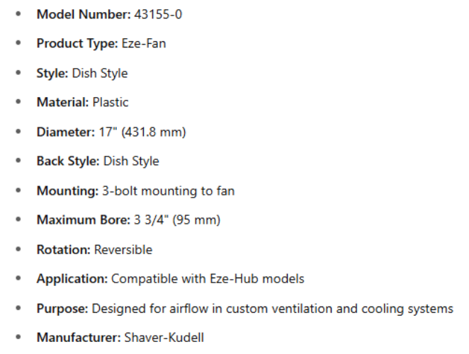 43155-0, Plastic Eze-Fan - 17"(431.8 mm ) Dish Style est en rupture de stock et sera expédié dès qu’il sera de retour en stock.