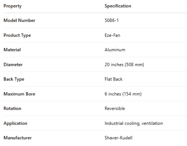 5086-1, Aluminum Eze-Fan – 20", 508 mm – Flat Back