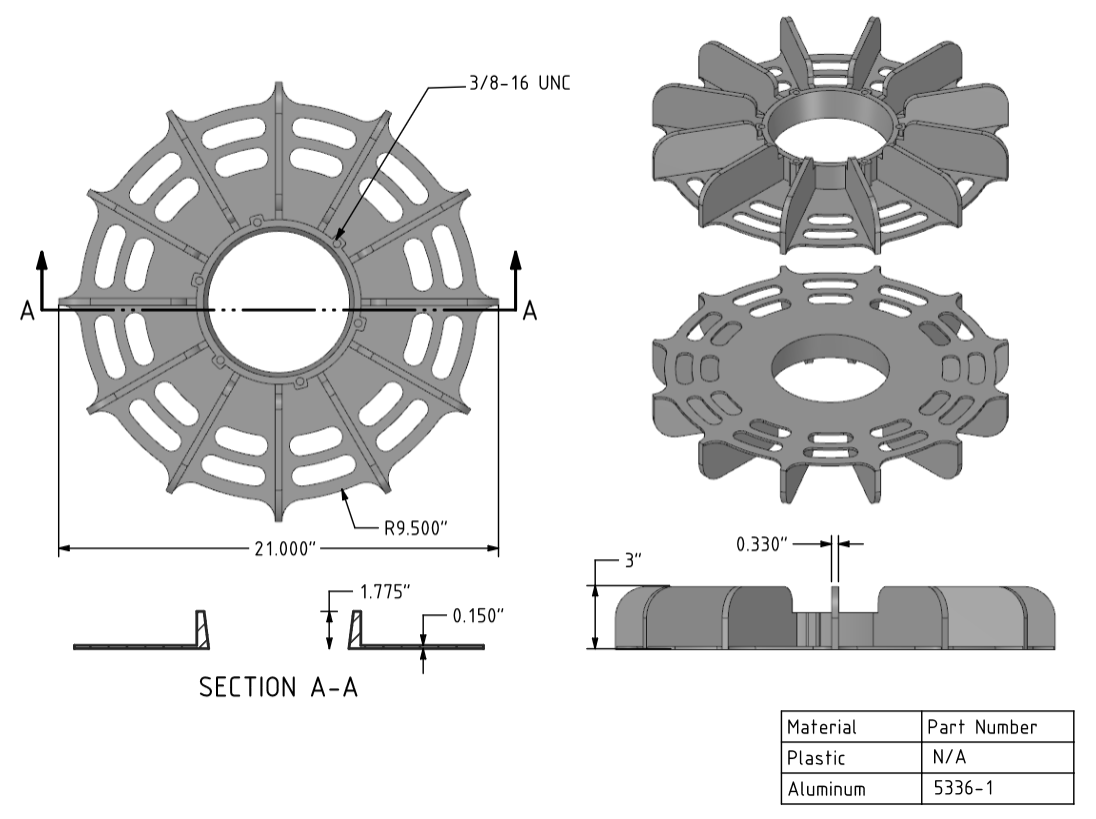 5336-1, Aluminum Eze-Fan – 21", 533.4 mm – Flat Back