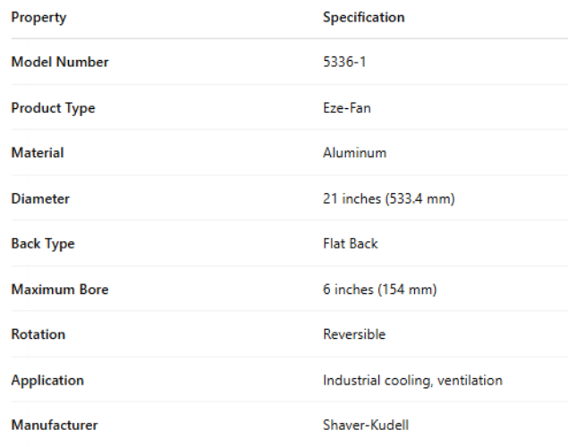 5336-1, Aluminum Eze-Fan – 21", 533.4 mm – Flat Back est en rupture de stock et sera expédié dès qu’il sera de retour en stock.