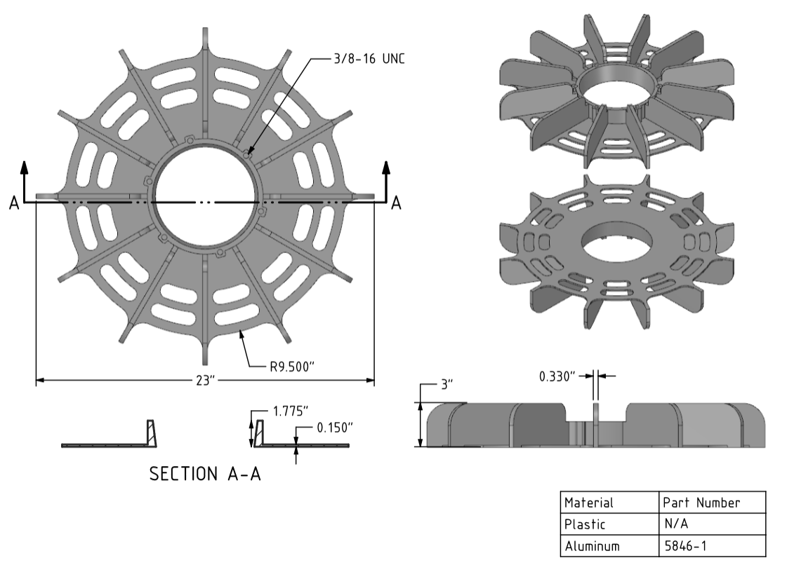 5846-1, Aluminum Eze-Fan – 23", 584.2 mm – Flat Back