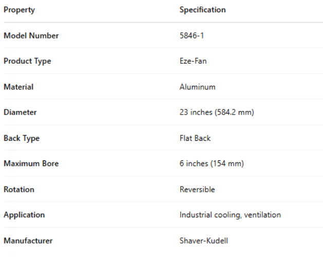 5846-1, Aluminum Eze-Fan – 23", 584.2 mm – Flat Back est en rupture de stock et sera expédié dès qu’il sera de retour en stock.