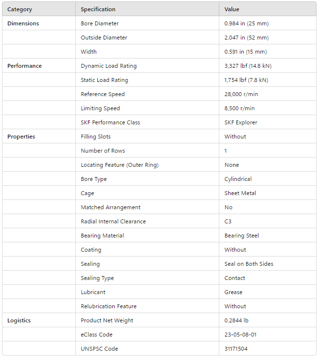 Dynamic Load Rating | 3,327 lbf (14.8 kN) |