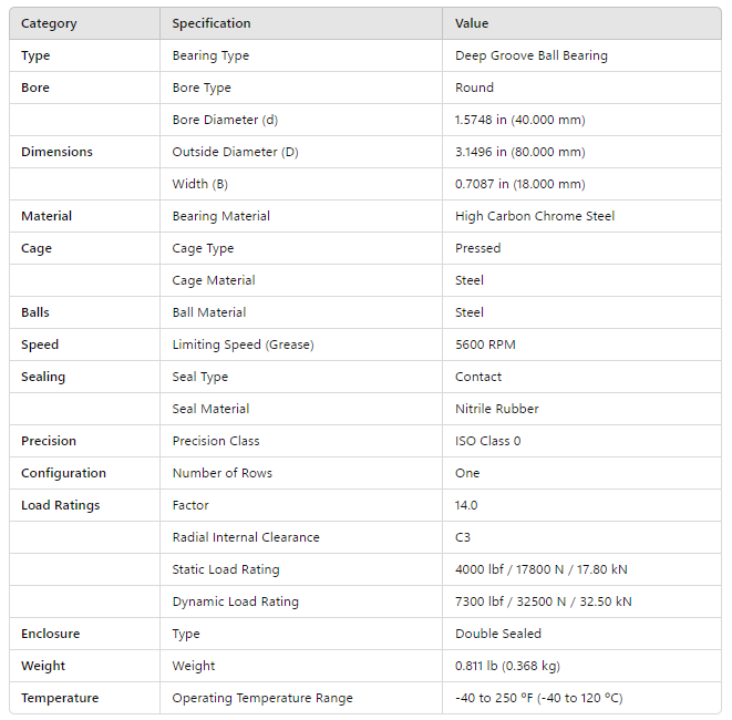 Bore Diameter (d) | 1.5748 in (40.000 mm) | |