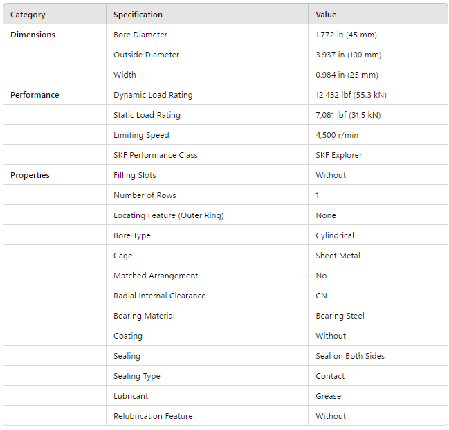 Dynamic Load Rating | 12,432 lbf (55.3 kN) |