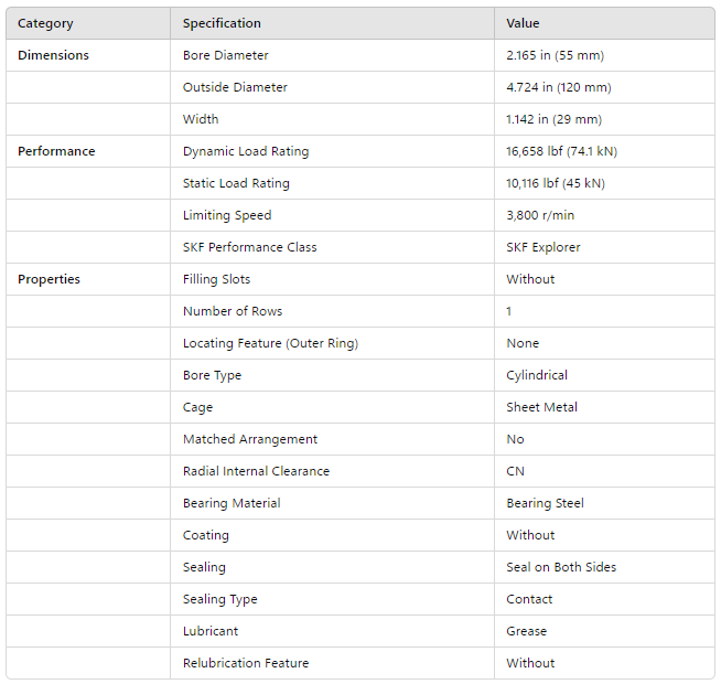 Dynamic Load Rating | 16,658 lbf (74.1 kN) |