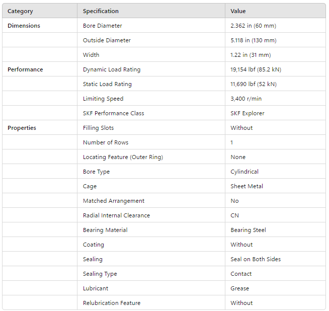 Dynamic Load Rating | 19,154 lbf (85.2 kN) |