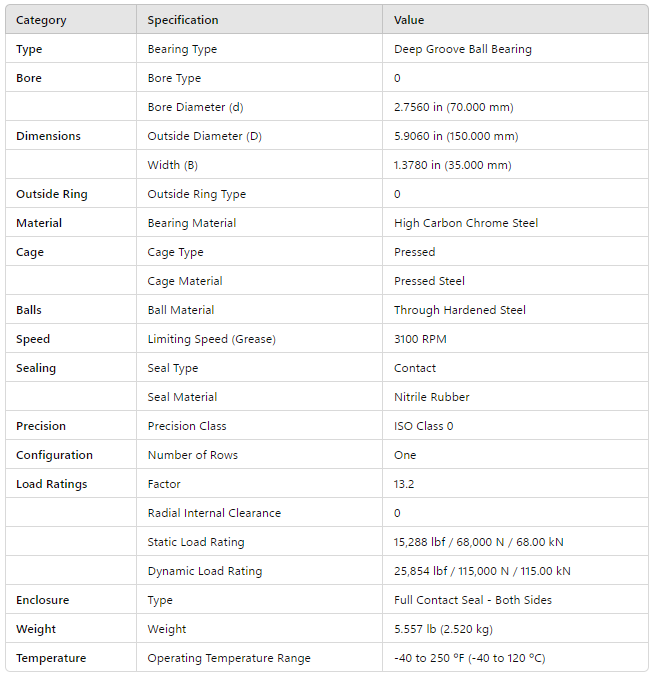Bore Diameter (d) | 2.7560 in (70.000 mm) | |
