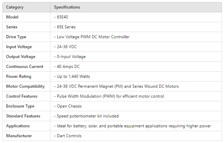 65E40, 65E Series DC Control 24/36VDC 40 AMPS Chassis