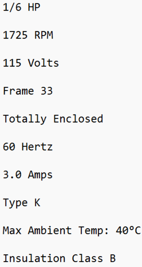 7J303BAX, General Electric, 1/6Hp, 1725 Rpm, 115 Volts, Frame: 33, Te,