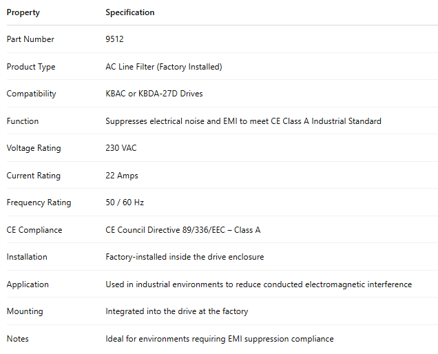 9512, KBAC, KBDA-27D AC Line Filter, factory installed