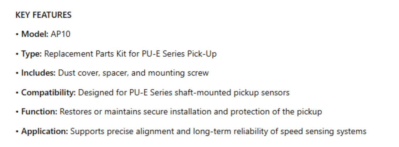 • Compatibility: Designed for PU‑E Series shaft-mounted pickup sensors