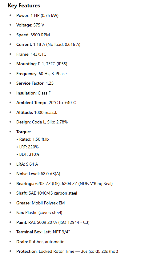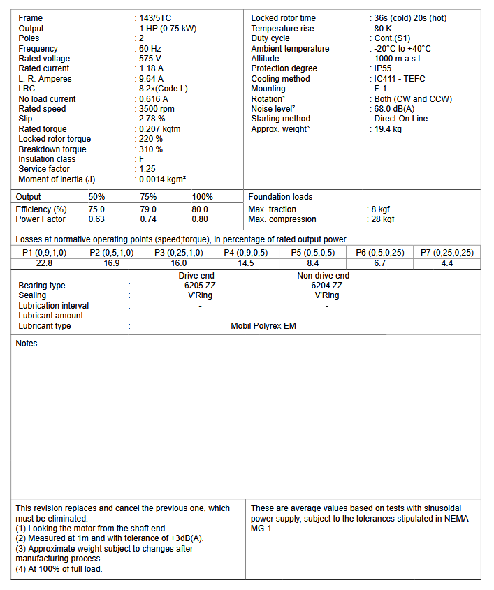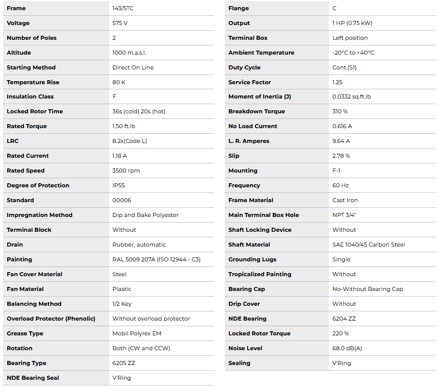 CT000502NPW22, W22 NEMA Premium Efficiency 1Hp 3500 RPM 2P 143/5TC 3Ph 575 V 60 Hz IC411 - TEFC - Foot-mounted