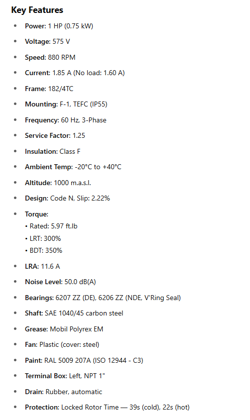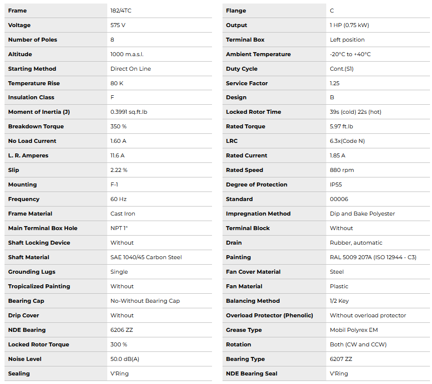 CT000508NPW22, W22 NEMA Premium Efficiency 1Hp 880 RPM 8P 182/4TC 3Ph 575 V 60 Hz IC411 - TEFC - Foot-mounted