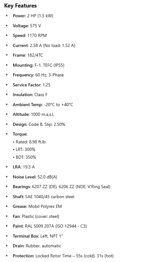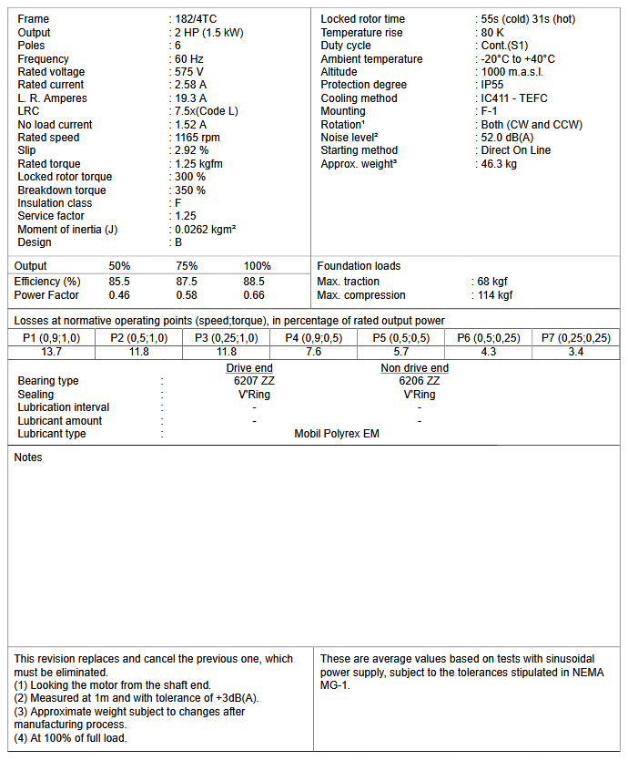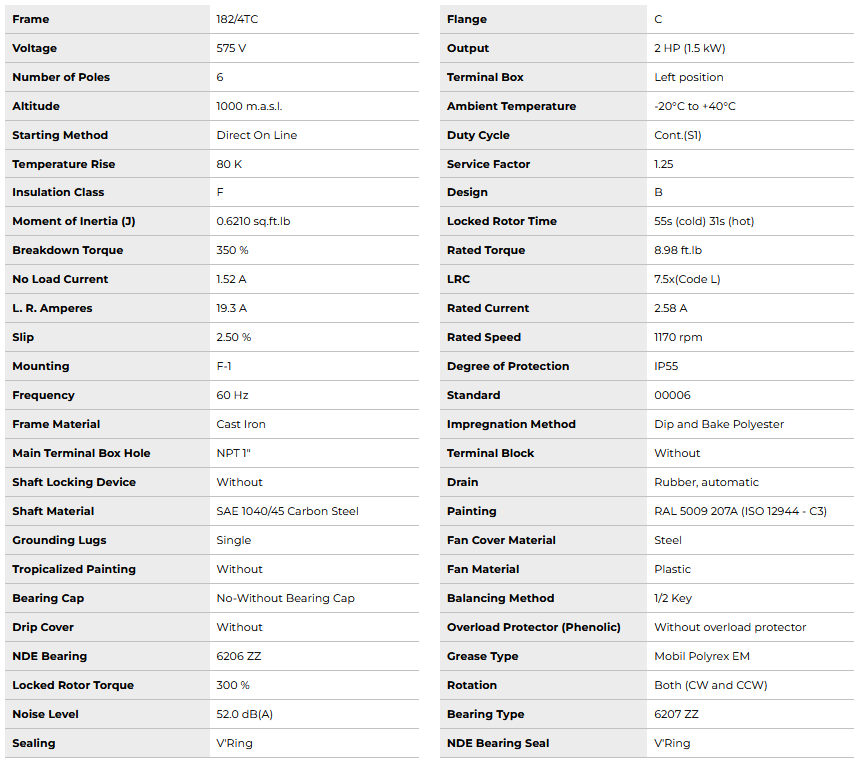 CT002506NPW22, W22 NEMA Premium Efficiency 2Hp 1170 RPM 6P 182/4TC 3Ph 575 V 60 Hz IC411 - TEFC - Foot-mounted