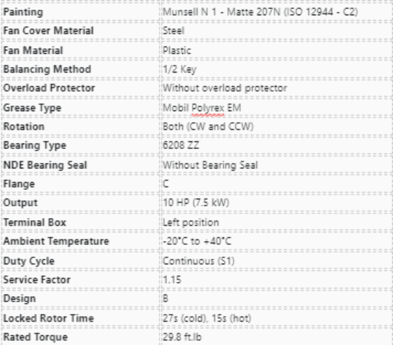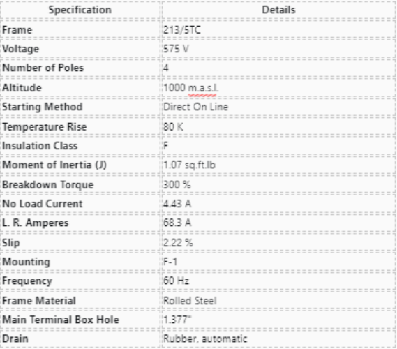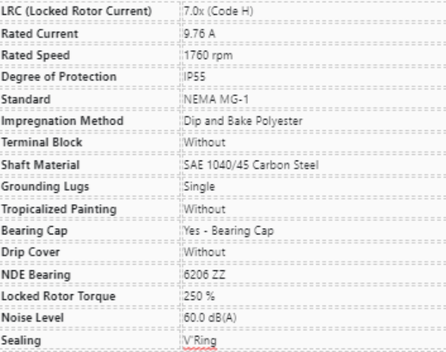 Locked Rotor Time | 27s (cold), 15s (hot) |