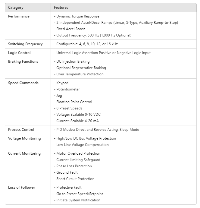 - 2 Independent Accel/Decel Ramps (Linear, S-Type, Auxiliary Ramp-to-Stop)