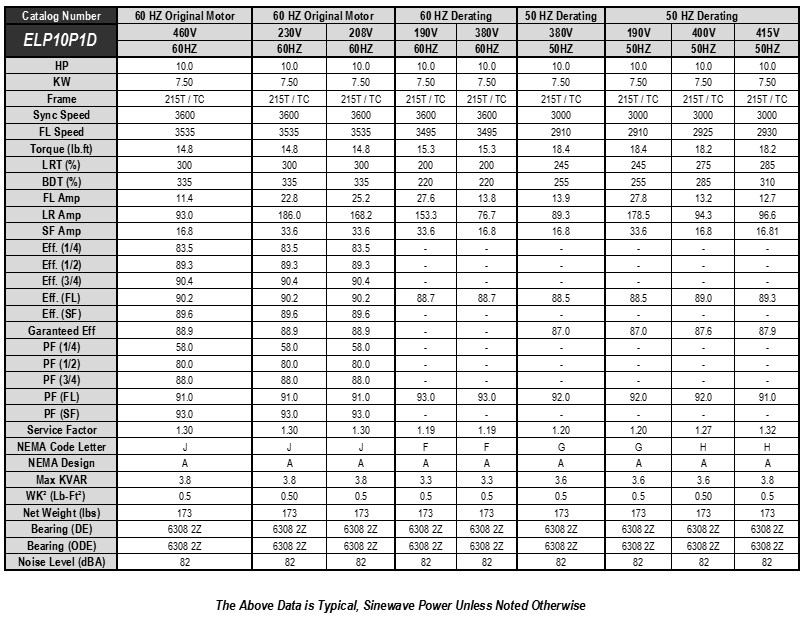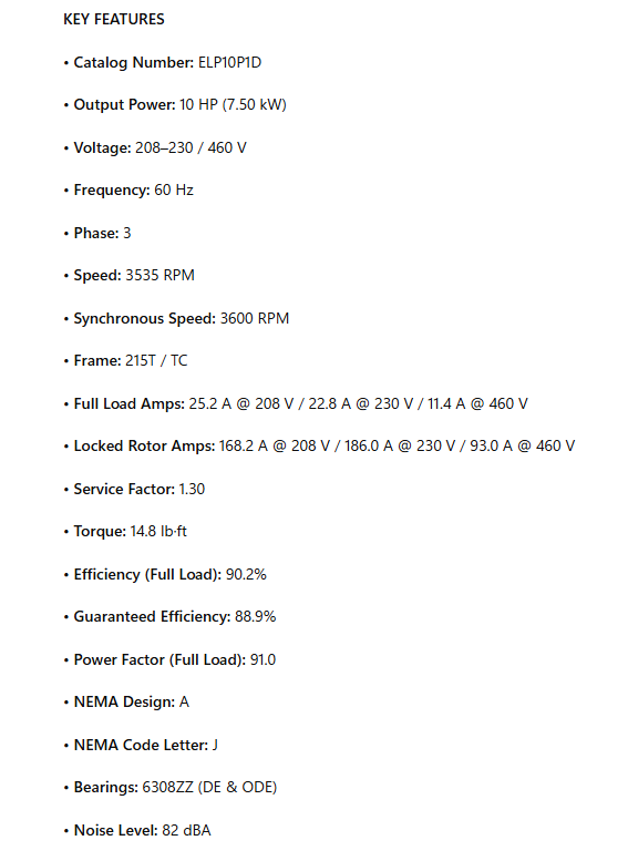 ELP10P1D, 10Hp, 3535RPM, 208-230/460V, 3Ph, 60-50Hz, TEFC, Frame 215T, IP55, eLline Premium Cast Iron