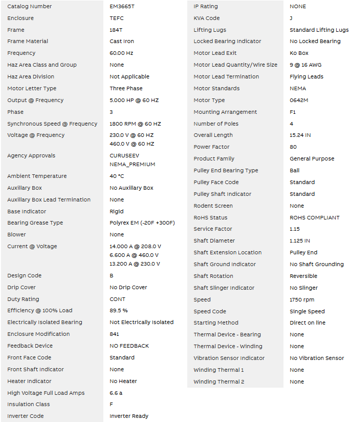 EM3665T, Baldor, 5Hp, 1750RPM, 184T, TEFC, 230V/460V, General Purpose